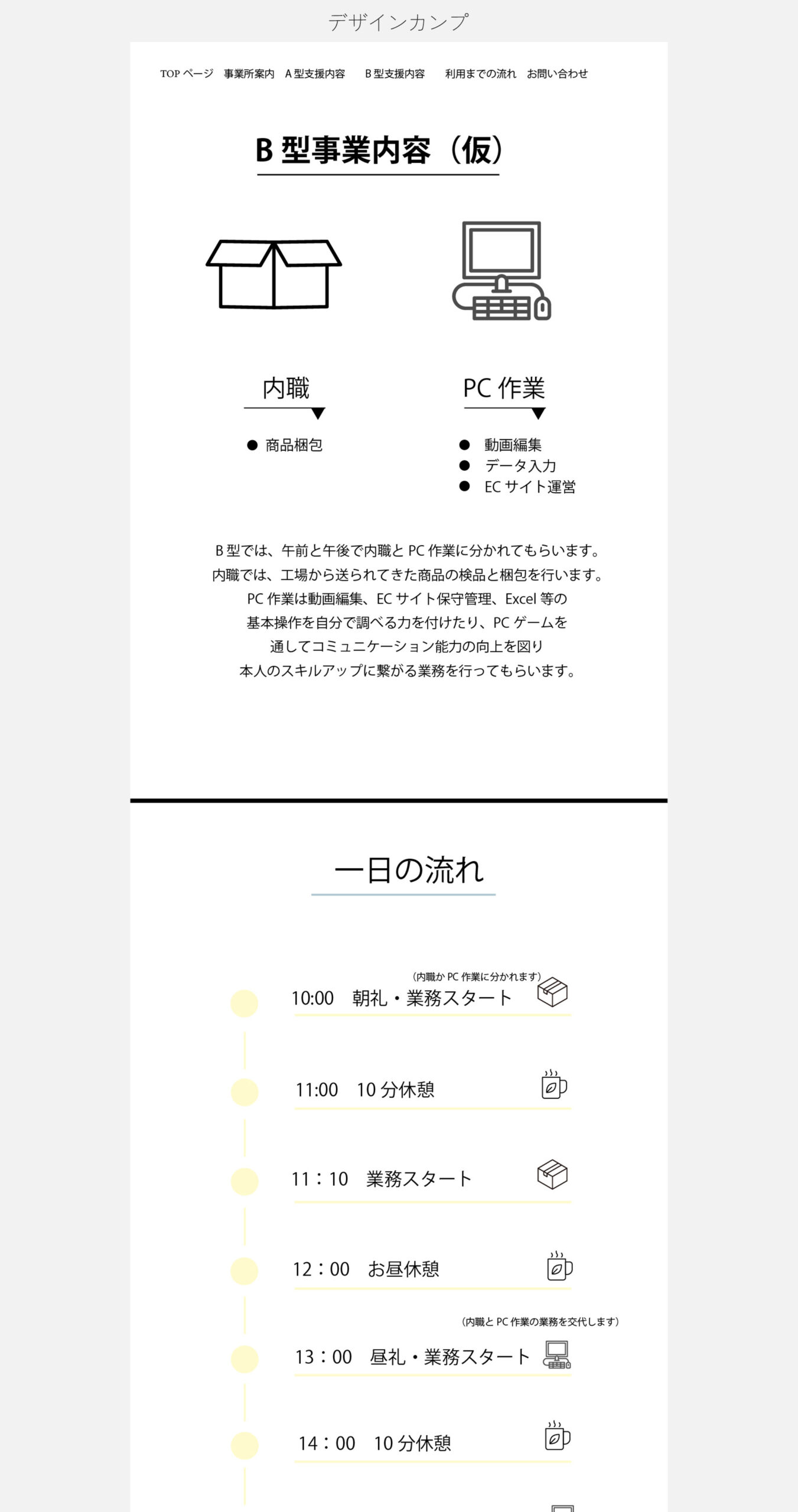 目的事業所の情報提供、制作事例の紹介。