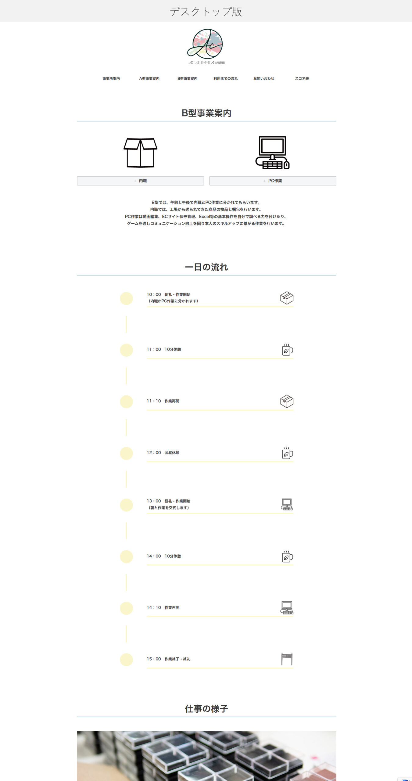 制作制作物や仕事の様子が伝わるようにし、