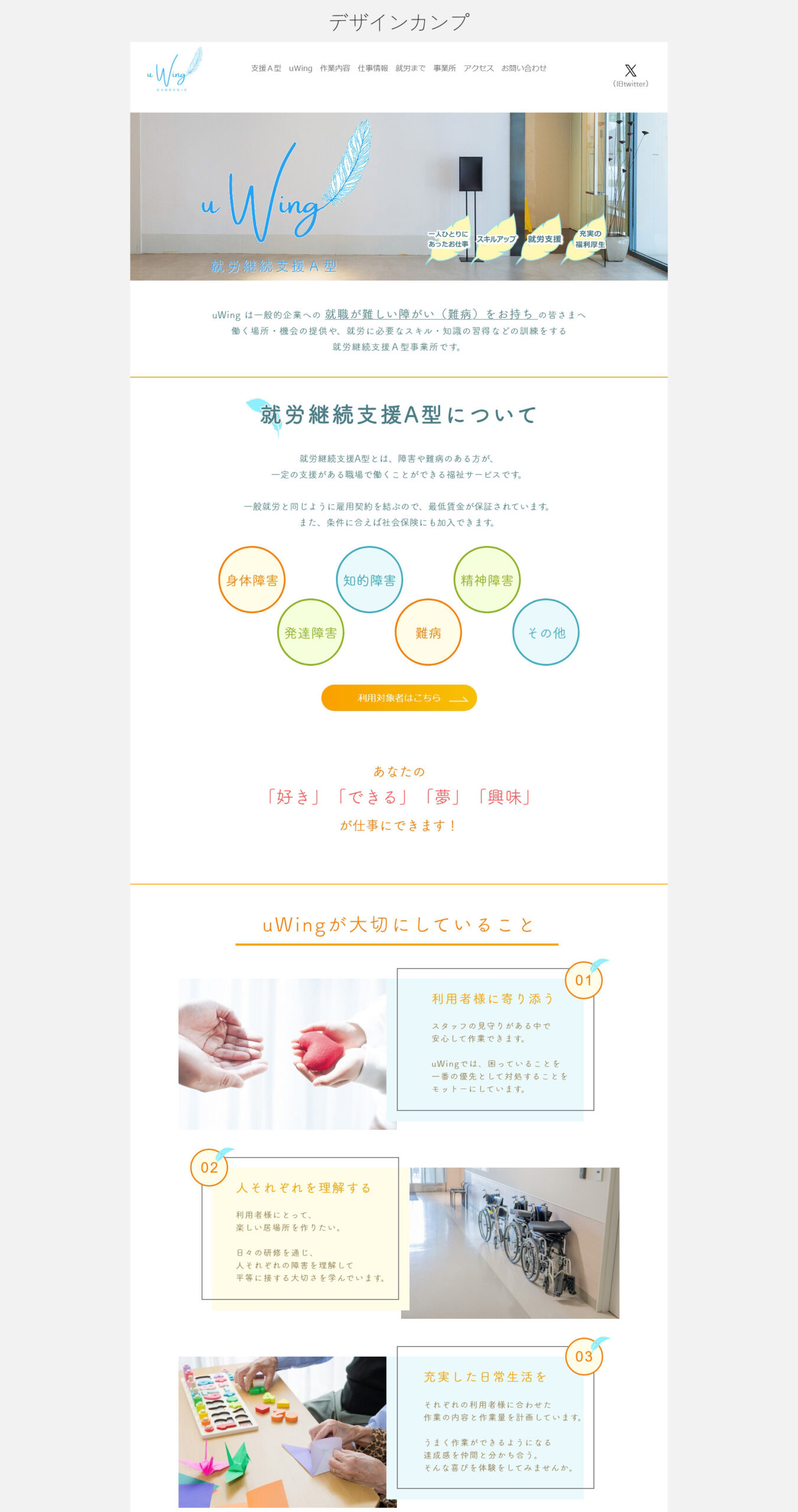 | 制作 | 1ページで構成し、メニューで任意の場所に移動するように。 詳しい情報が必要な項目では、ポップアップを使うなどして表示をまとめた。 載せる項目が多いので、配置の順番に気を配りながらデザインした。 |